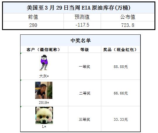 2019年4月第1期“EIA大竞猜活动的中奖结果已出,获奖信息如下: